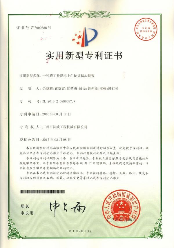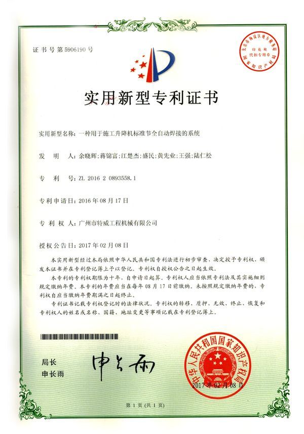 廣州市特威工程機(jī)械有限公司地處廣州市白云區(qū)神山鎮(zhèn),廣清高速神山出口附近,是一家施工升降機(jī)的專業(yè)生產(chǎn)廠家。公司成立于2011年,占地100000多平方米,注冊(cè)資金1060萬(wàn)元,現(xiàn)有員工300余人其中工程技術(shù)人員33人,高級(jí)技術(shù)人員52人。